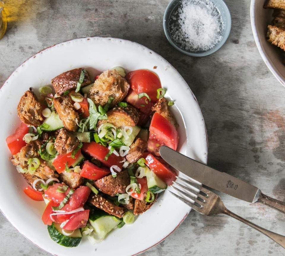 | Panzanella | sommer, leicht, vegan | Brot (hart),Tomaten,Zwiebel,Gurken,Basilikum,Olivenöl,Essig | 85 |
