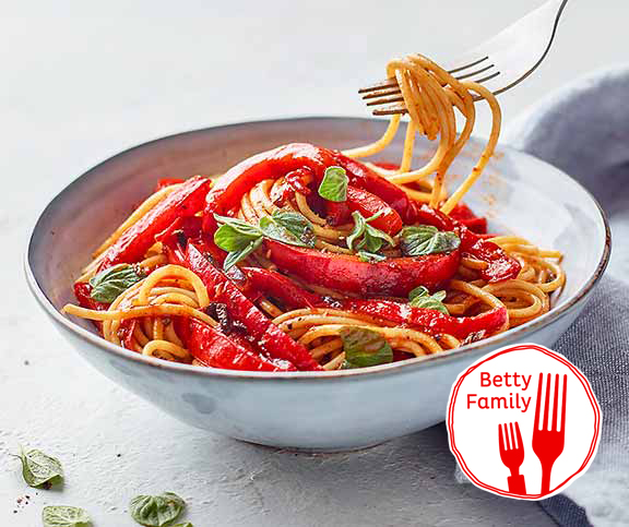 | Peperonata-Spaghetti | kids, mittag, leicht, sommer, vegan | Peperoni,Tomatenpüree,Spaghetti | 504 |
