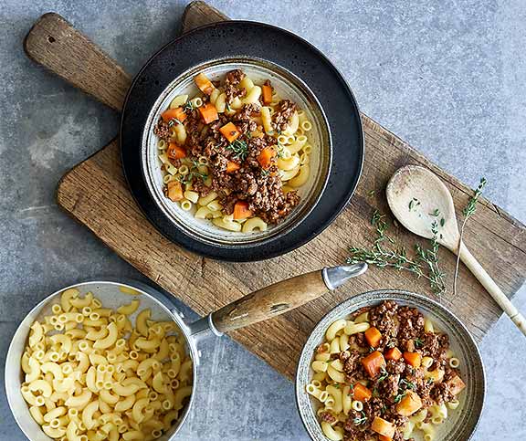 | Ghackets mit Hörnli | kids, mittag, vegan | Karotten,Rotwein,Tomatenpüree,Hörnli,Vegi Gehacktes | 505 |