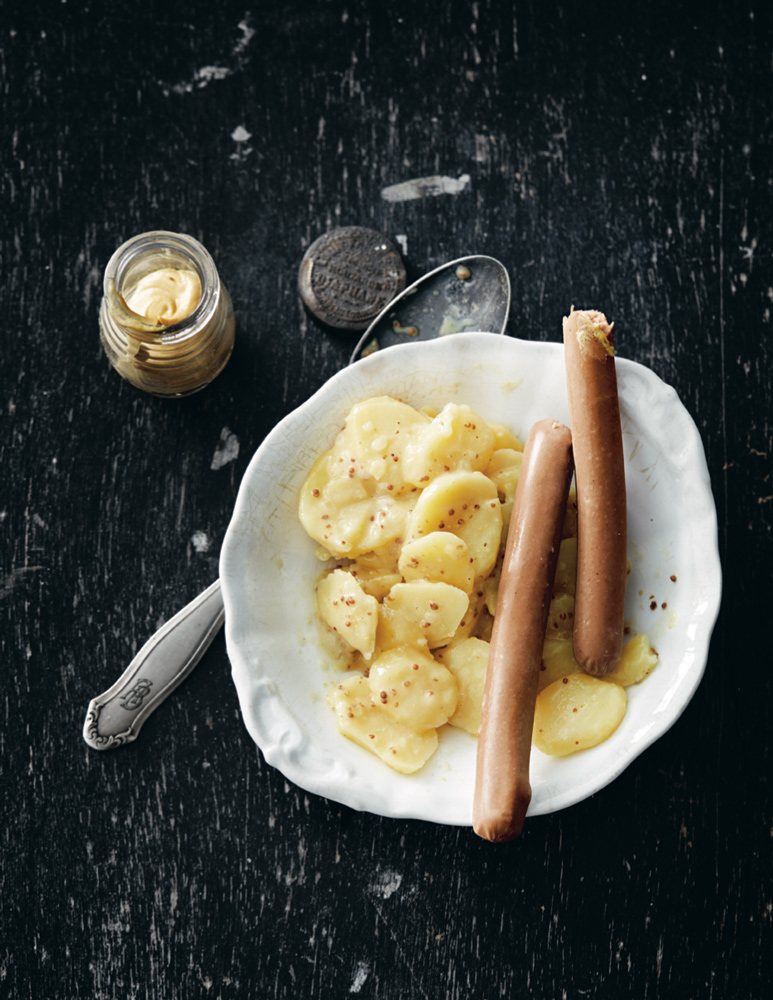 | Kartoffel Salat mit Würstli | vegan | Kartoffeln (festkochend),Essiggurken,Mayonaise,Senf,Zwiebel,Wienerli,Vegi Cevapcici | 524 |