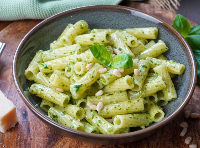 | Pasta mit Pesto | mittag, kids, vegan | Pasta,Pesto,Reibkäse | 523 |