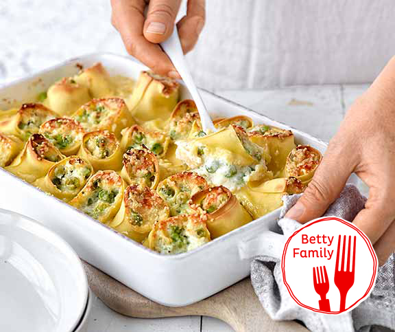 | Erbsli-Canneloni | deftig | TK Erbsen,Zwiebel,Zitrone (Bio),Ricotta,Gruyère (gerieben),Pfeffer,Salz,Muskat | 8 |