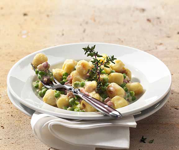 | Opapa Gnochi | deftig, Mittag | Gnochi,Schinkenwürfeli,Tiefgekühlte Erbsen,Saucenhalbrahm,Reibkäse | 1 |