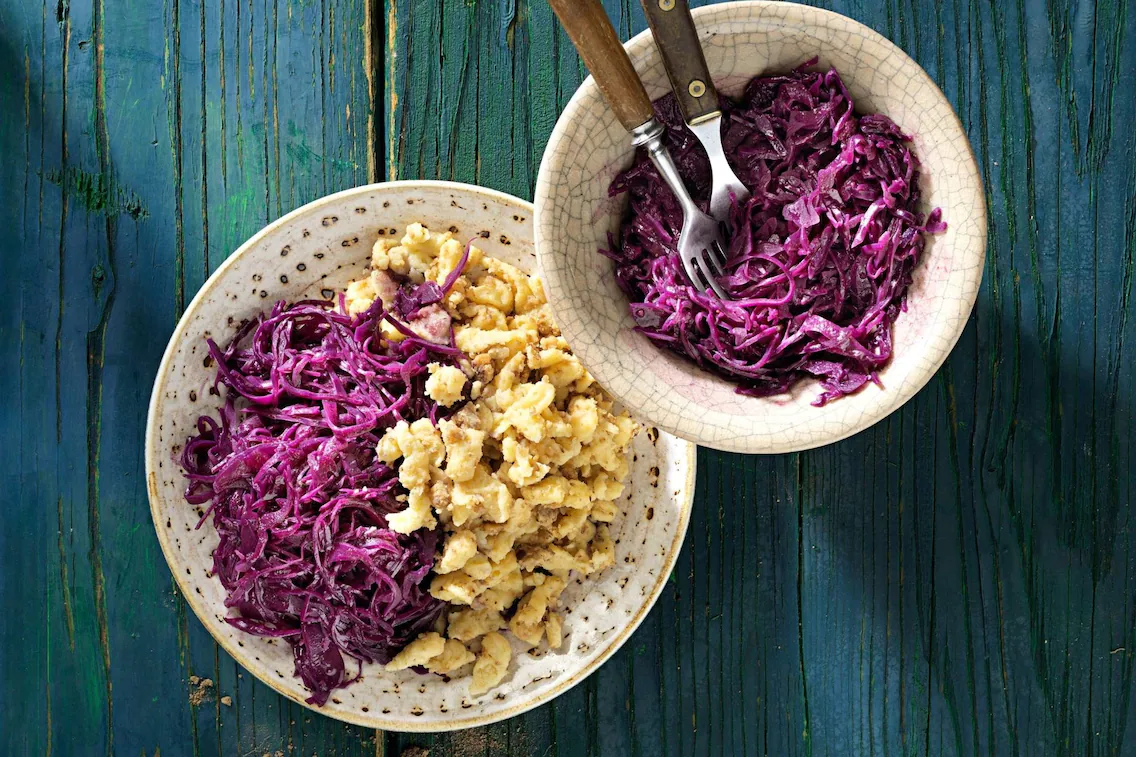 | Rotkraut mit Spätzli und Marroni | mittag, kids, vegan | TK Marroni,Knöpfli,Rotkraut | 514 |