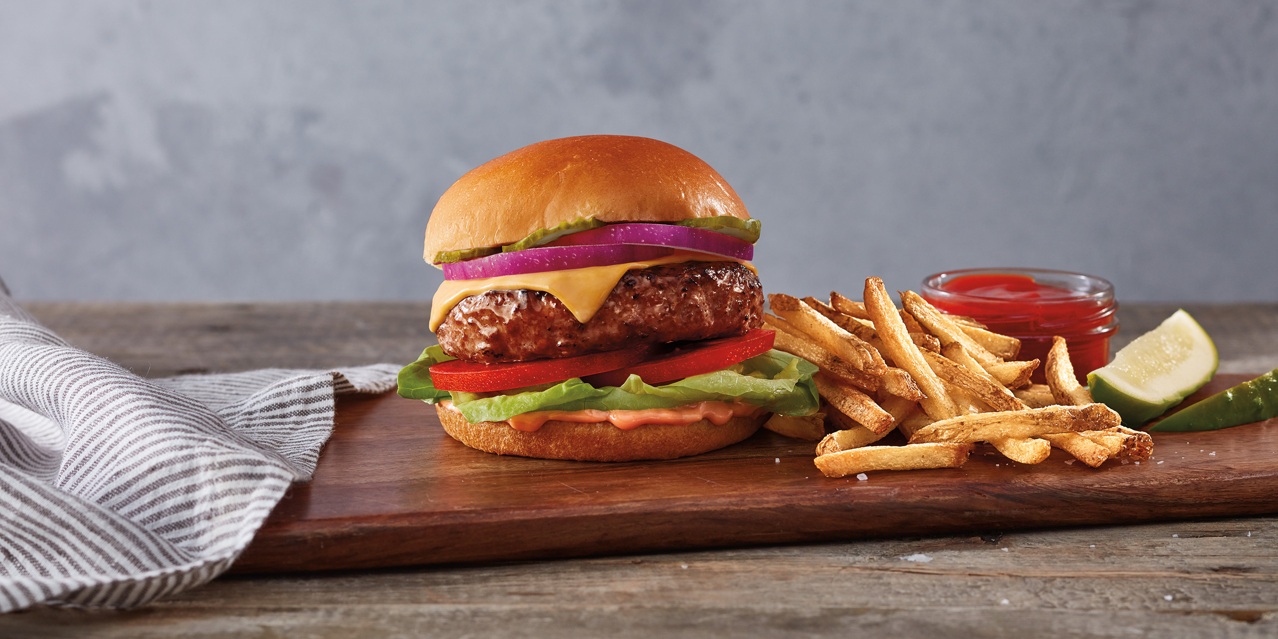 | Hamburger | kids, mittag, deftig, vegan | Vegi Burger,Buns,Tomaten,Raclettekäse (vegan),Essiggurken,TK Pommesfrites,Hamburger,Schmelzkäse | 511 |