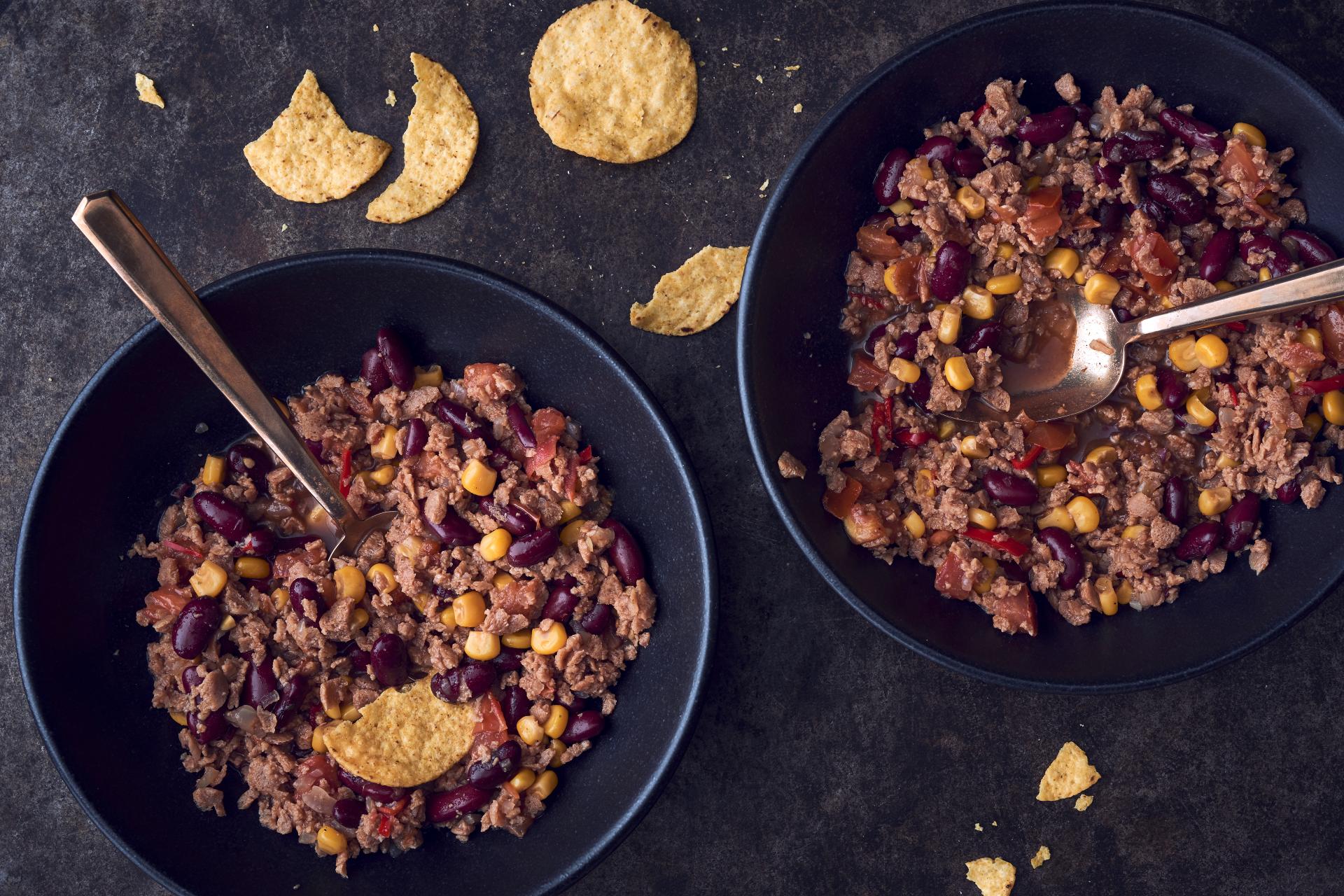 | Chili sin Carne | vegan, deftig | Sojaschnetzel,Süsskartoffeln,Taco Gewürzmischung,Rotwein,Büchsentomaten,Peperoni,Indianerbohnen,Cremefraiche | 7 |