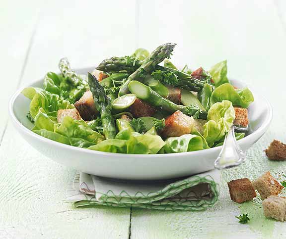| Lauwarmer Spargel-Brotsalat | leicht, Frühling | Ruchbrot,Spargeln (grün),Salz,Pfeffer,Kopfsalat,Essig,Zitronensaft,Olivenöl,Salz,Pfeffer,Petersilie | 71 |