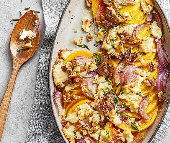 | Kürbisgratin | leicht, herbst | Kürbis (Butternut),Zwiebel (rot),Salz,Pfeffer,Öl,Feta,Baumnusskerne,Reibkäse | 62 |