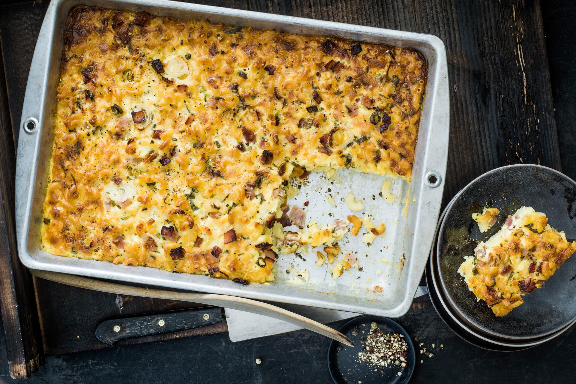 | Rösti-Lauch-Gratin | deftig, winter | Kartoffeln (festkochend),Lauch,Peperoncino,Schinkenwürfeli,Saucenhalbrahm,Milch,Käsekuchen-Mischung,Muskat,Salz | 70 |