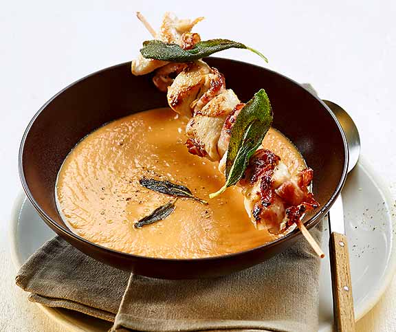 | Süsskartoffelsuppe | leicht, winter | Süsskartoffeln,Zwiebel,Knoblauchzehe,Butter,Gemüsebouillon,Vollrahm | 32 |