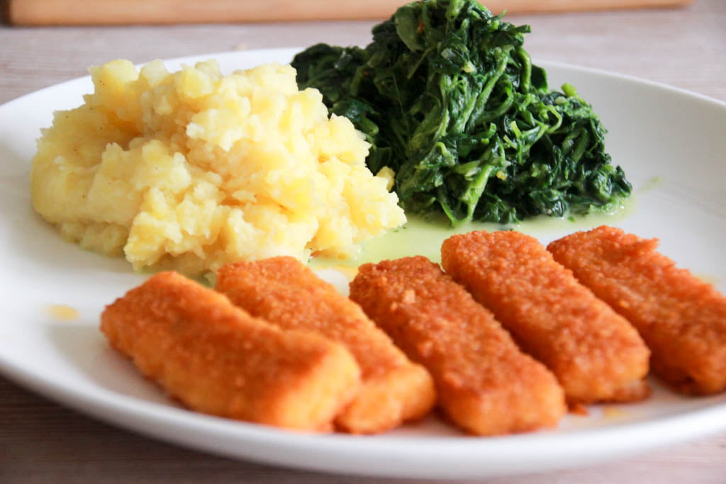 | Fischstäbli & Salzkartoffeln | mittag, kids, vegan | TK Fischstäbli,TK Spinat,Kartoffeln (festkochend),Mayonaise,Karotten,Halbrahm,Butter | 519 |