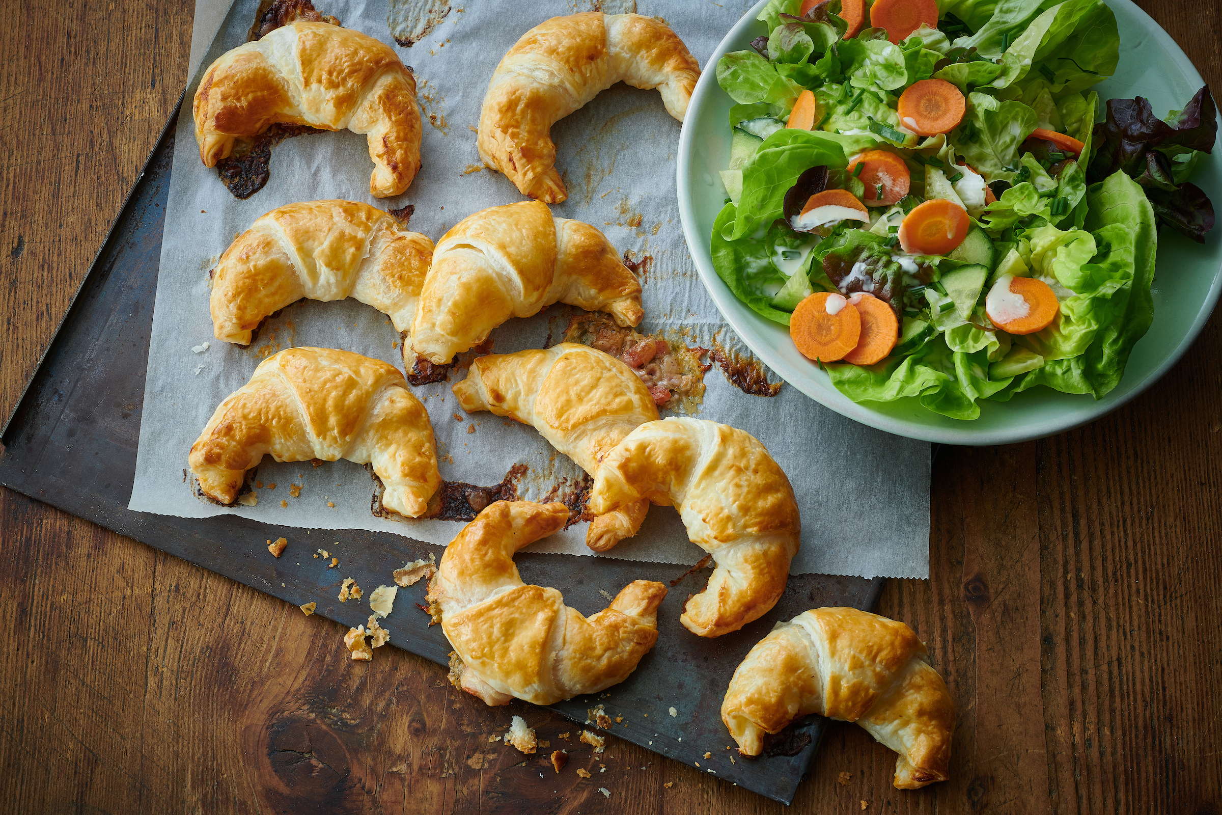 | Schinkengipfeli mit Salat | mittag, kids | TK Schinkengipfeli,Salat,Karotten,Randen,Dose Mais | 500 |