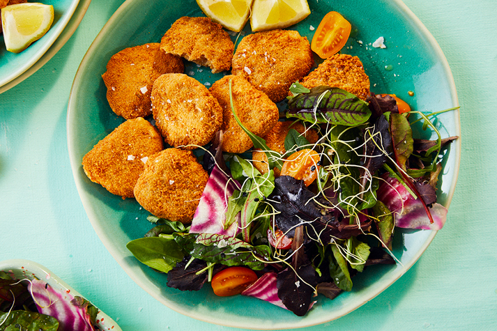 | Vegi-Nuggets mit Salat | kids, mittag, vegan | Vegi Nuggets,Sweet Chili Sauce,Salat | 525 |