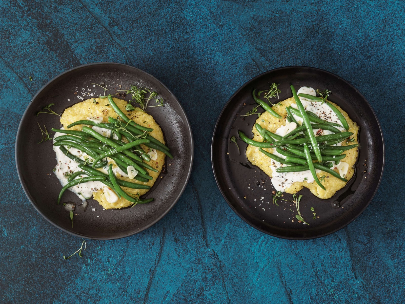 | Polenta mit Bohnen | leicht | Gemüsebouillon,Bramata (Polenta),Bohnen,Knoblauchzehe,Butter,Mascarpone,Joghurt (nature),Kresse | 30 |
